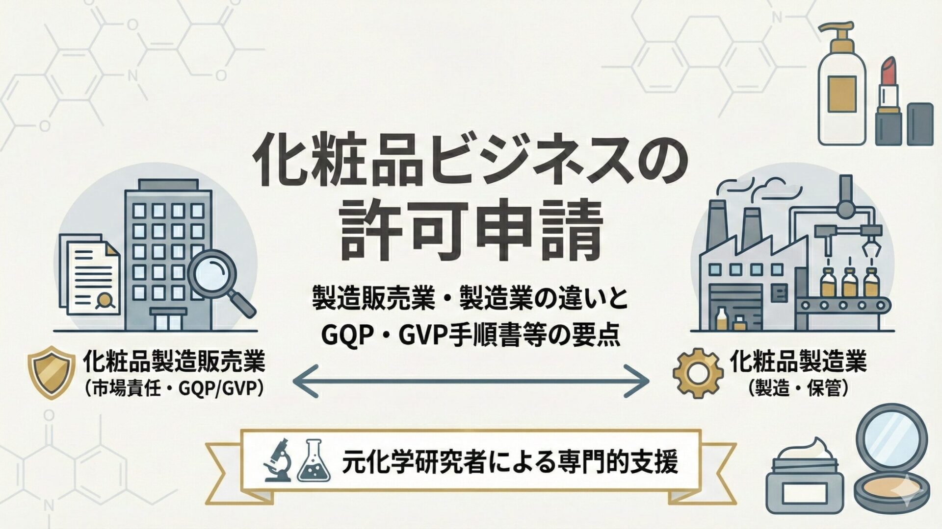 化粧品ビジネスの許可申請|製造販売業・製造業の違いとGQP・GVP手順書等の要点