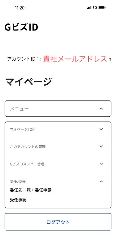 1. GビズIDの「受任承認」メニューから手続きに入ります。