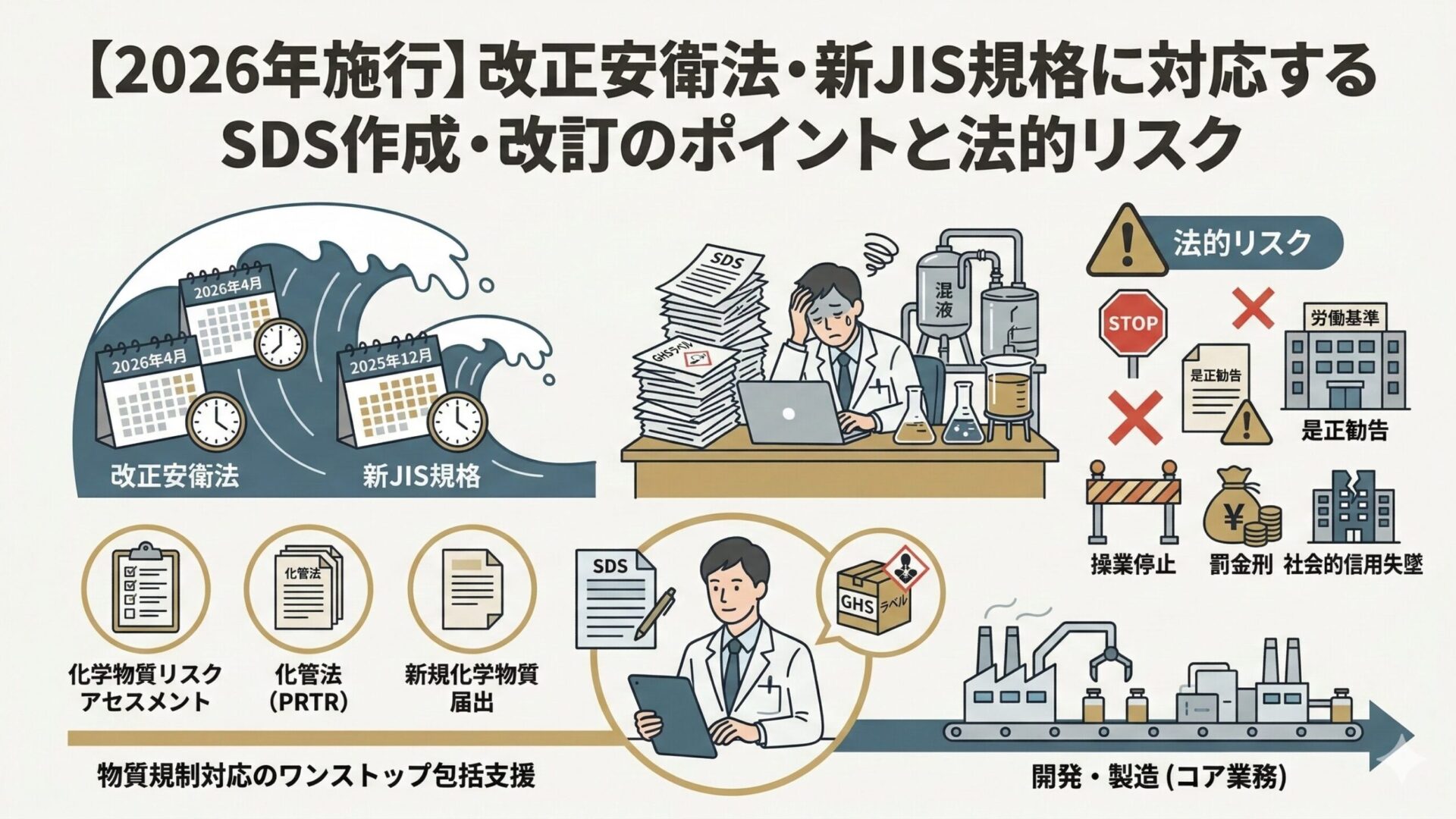 【2026年施行】改正安衛法・新JIS規格に対応するSDS作成・改訂のポイントと法的リスク